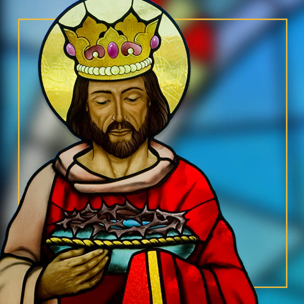 The crown fleury represents Louis IX as King, rather than as Saint.