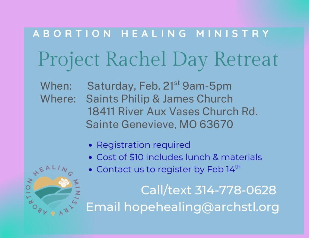 All are welcome to attend the Rite of Naming & Commendation, a prayer service developed by the Archdiocese of St. Louis to meet the needs of families whose child died before birth for any reason (including miscarriage, accident, abortion, or stillbirth). Parents and families of any religious background are invited to attend, whether the loss was recent or long ago.