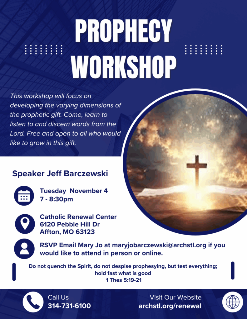 A series of training classes catechesis, reflection and prayer of contemplation. Bring food to share for gathering Event will be at the Sta Cecilia Parish We meet at church for mass.